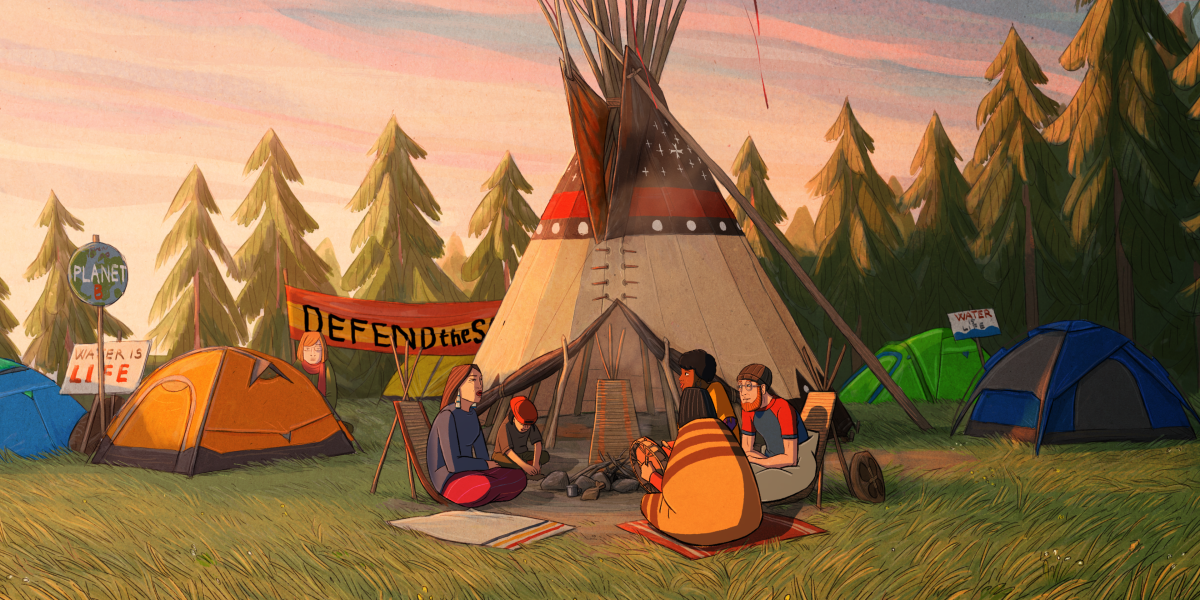 Des activistes amérindiens s'opposent à un projet d'oléoduc sur leur territoire ancestral. Le soir autour du feu, ils se réunissent autour de leur Grand-Père qui leur fait le récit de la Création. Le conte rappelle à tous la place de l’Homme sur la Terre et son rôle dans la destruction de la nature.