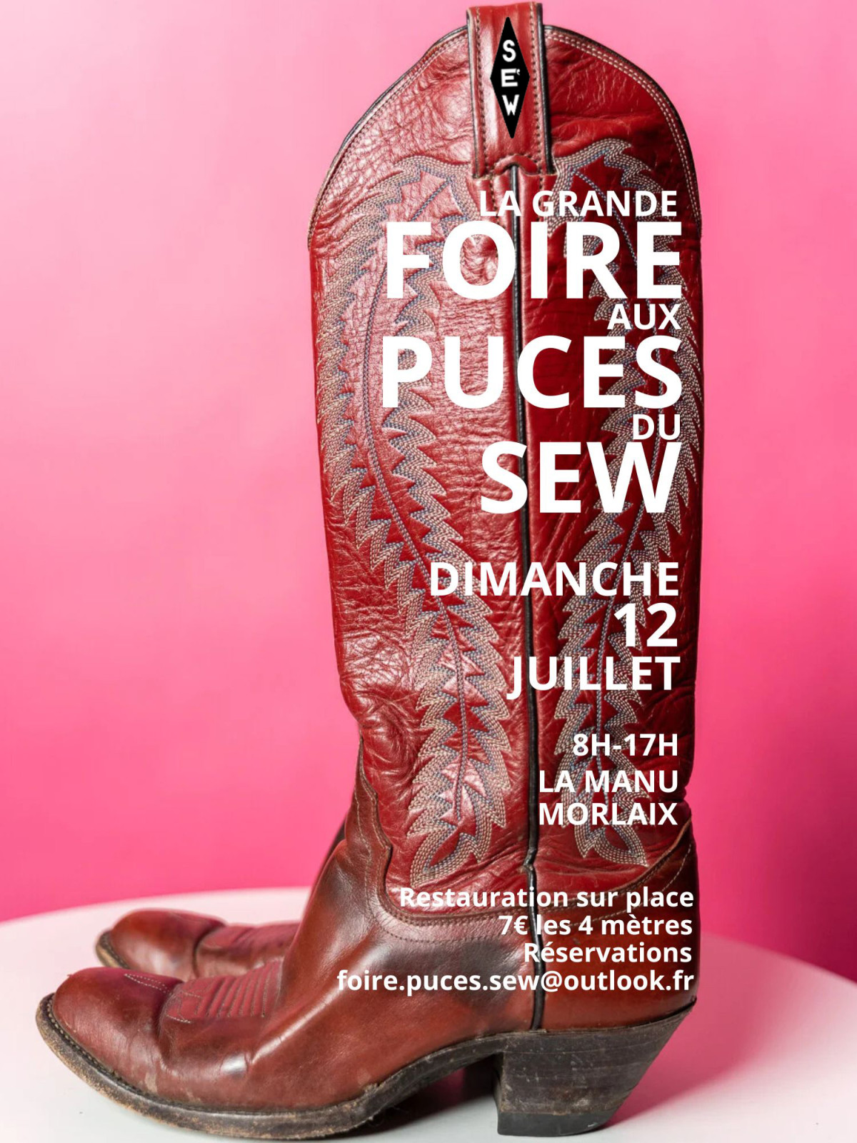 Nous avons le plaisir de vous annoncer que la nouvelle édition de la grande foire aux puces du SEW aura lieu le dimanche 12 juillet 2026 de 8h à 17h dans l'enceinte de La Manu à Morlaix. Cette grande foire, organisée par le SEW et la fine équipe de l'Assoce Tomate, réunira plus de 150 vendeurs d' antiquités, de brocs, de babioles, de fripes et autres "puces en tout genre".